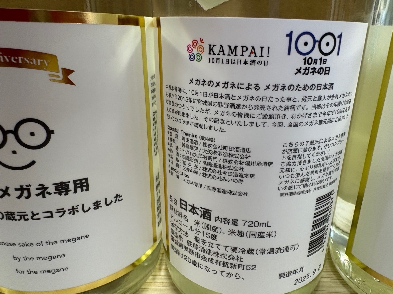 10周年という事で萩野酒造さんと親交のある全国のメガネ蔵元さんに協力いただいてコラボ企画となっています。